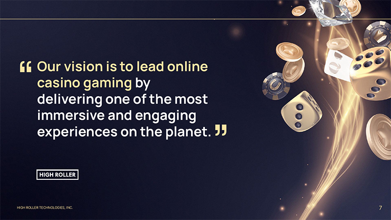 HIGH ROLLER TECHNOLOGIES, INC. 7 Our vision is to lead online casino gaming by delivering one of the most immersive and engaging experiences on the planet. “ “