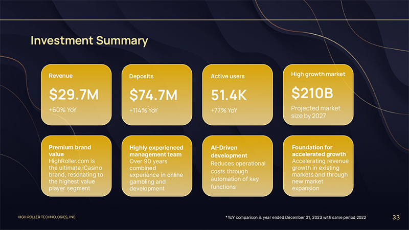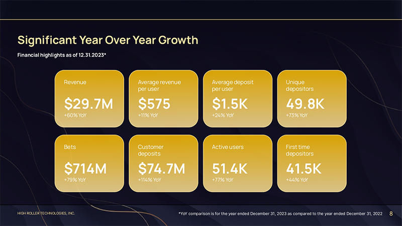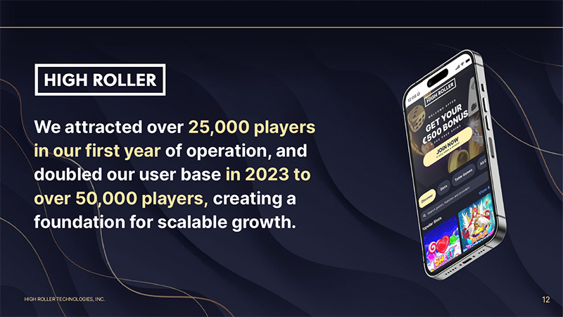 HIGH ROLLER TECHNOLOGIES, INC. 12 We attracted over 25,000 players in our first year of operation, and doubled our user base in 2023 to over 50,000 players, creating a foundation for scalable growth.
