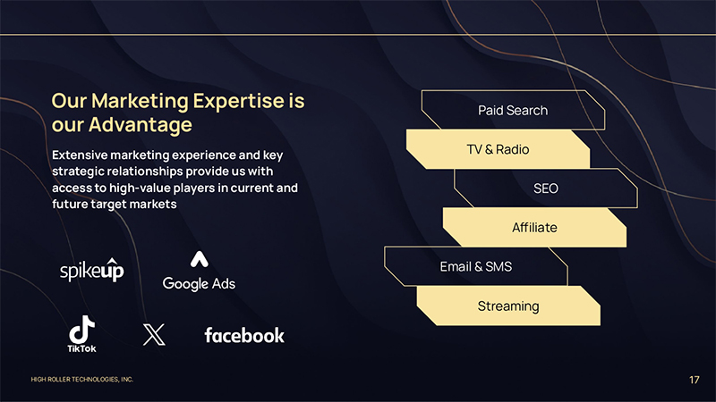 HIGH ROLLER TECHNOLOGIES, INC. 17 Our Marketing Expertise is our Advantage Paid Search TV & Radio SEO Affiliate Email & SMS Streaming Extensive marketing experience and key strategic relationships provide us with access to high-value players in current and future target markets