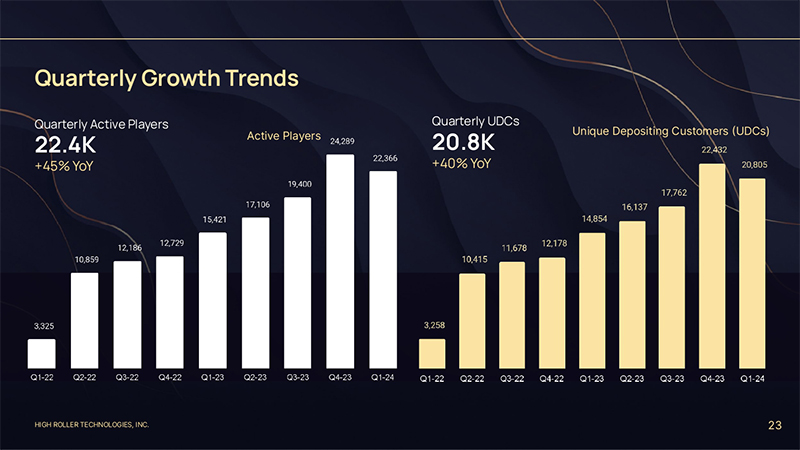 HIGH ROLLER TECHNOLOGIES, INC. 23 Quarterly Growth Trends Active Players Quarterly Active Players 22.4K +45% YoY Unique Depositing Customers (UDCs) Quarterly UDCs 20.8K +40% YoY