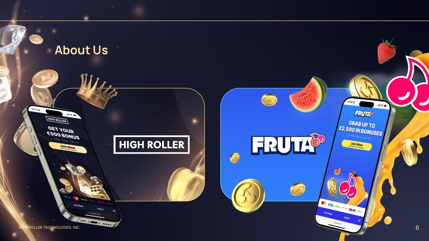 About Us HIGH ROLLER TECHNOLOGIES, INC. 6