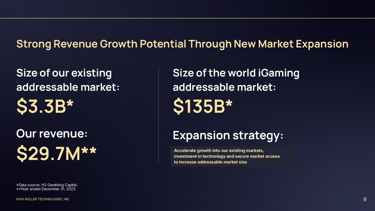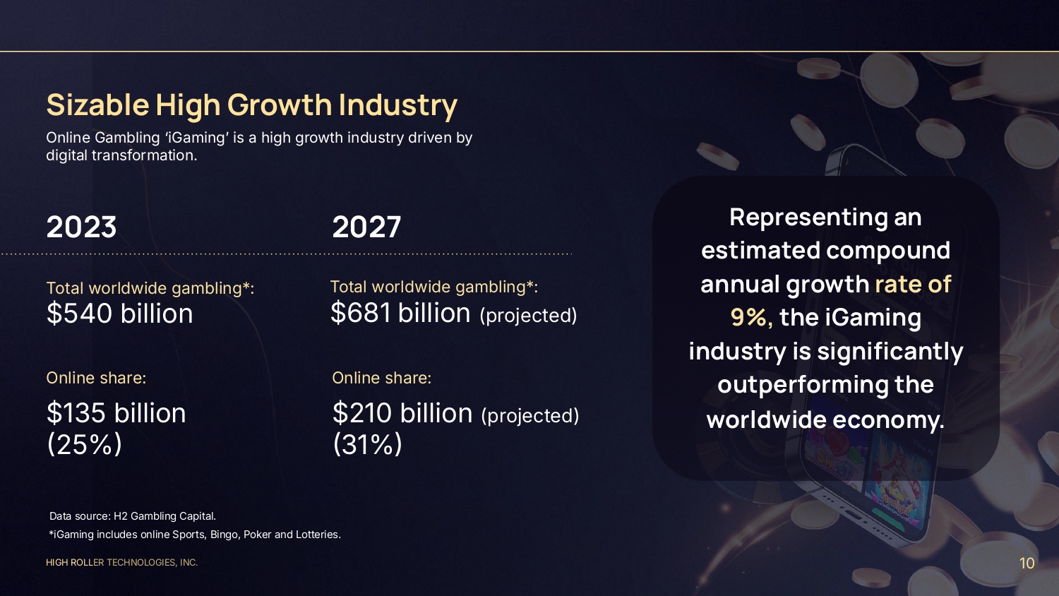 “ Our vision is to lead online casino gaming by delivering one of the most immersive and engaging experiences on the planet. HIGH ROLLER TECHNOLOGIES, INC. ” 7