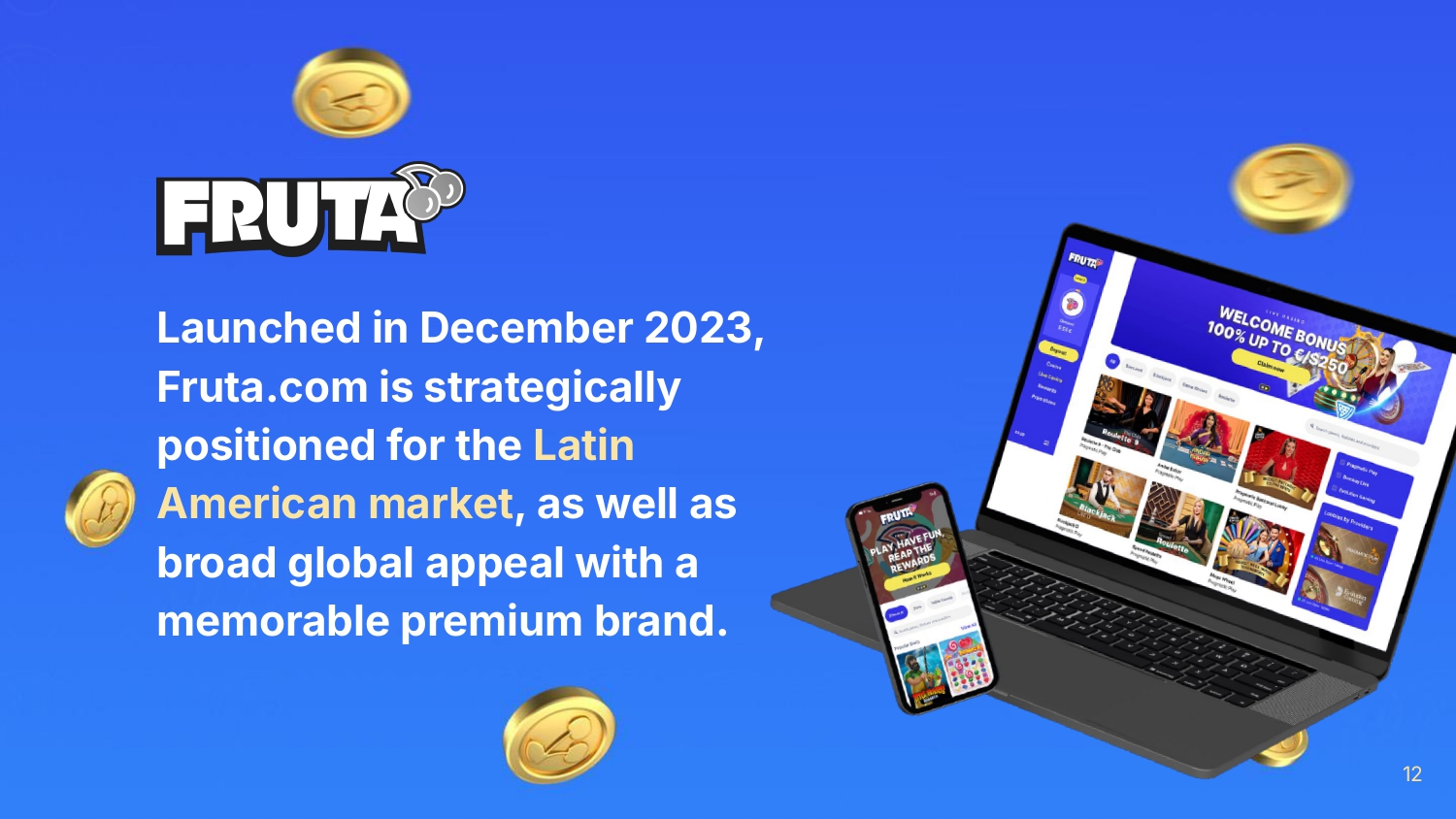 Launched in December 2023, Fruta.com is strategically positioned for the Latin American market, as well as broad global appeal with a memorable premium brand. 12