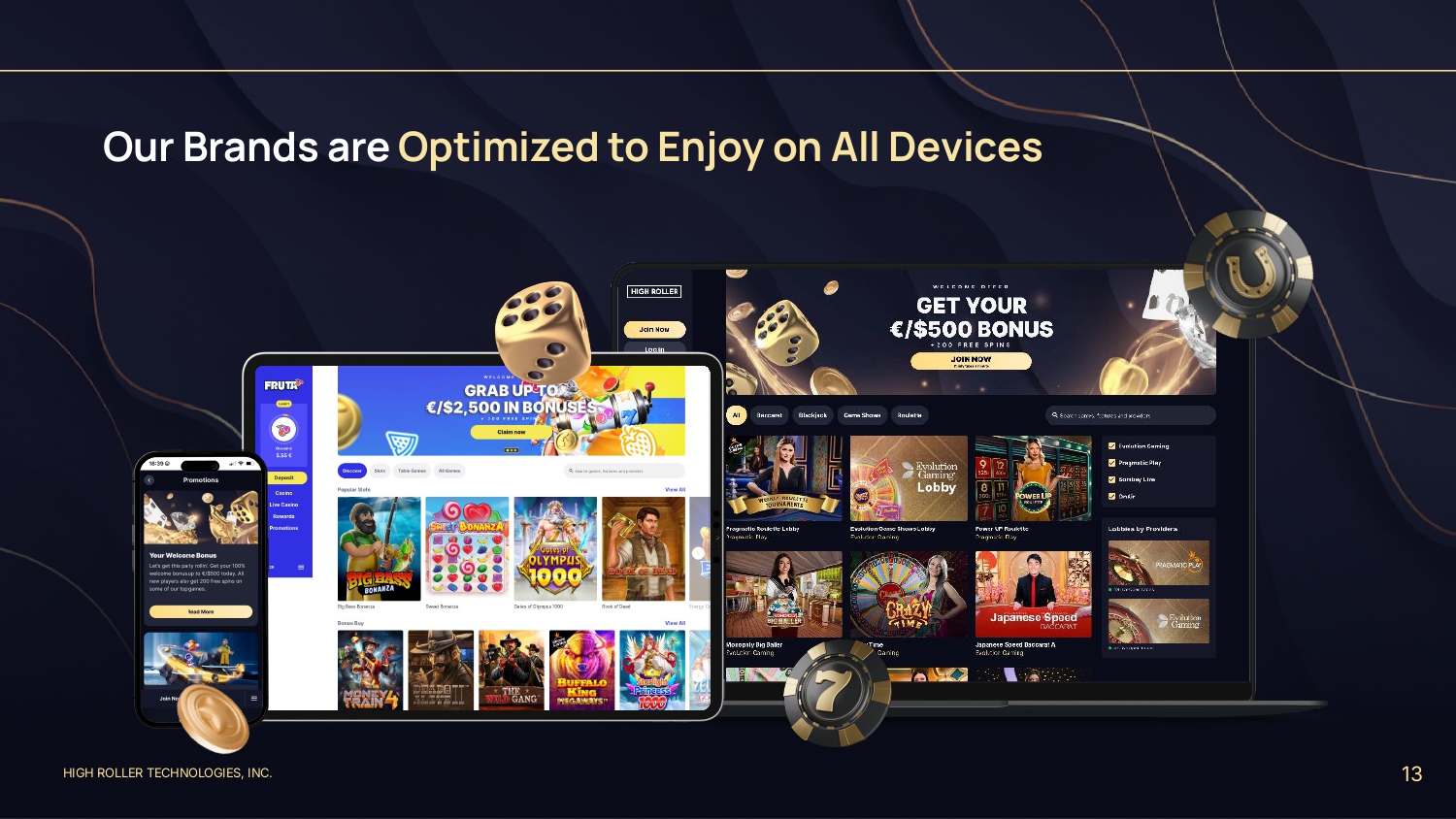 Our Brands are Optimized to Enjoy on All Devices HIGH ROLLER TECHNOLOGIES, INC. 13