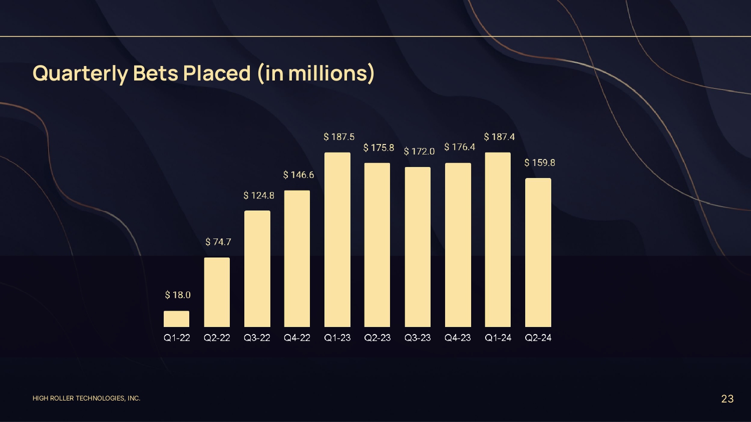 Quarterly Bets Placed (in millions) HIGH ROLLER TECHNOLOGIES, INC. 23